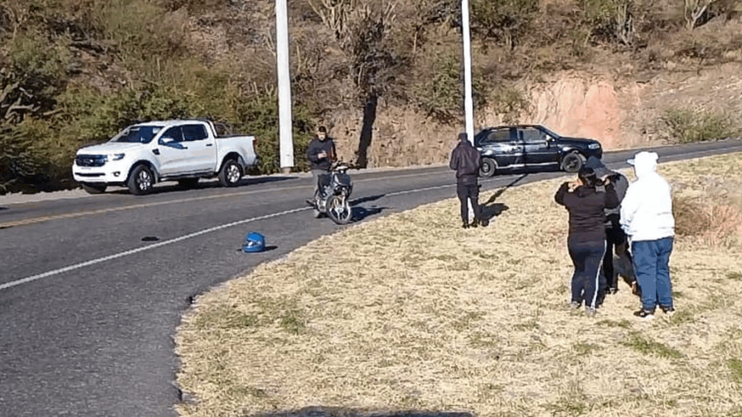 Un accidente de tránsito ocurrió está mañana en la quebrada de Moreira, cuando una moto y un auto colisionaron en una curva. La conductora de un Volkswagen Gol descendía por la quebrada y se encontró con la moto que ocupaba toda la calzada. El motociclista intentó esquivar el impacto, pero chocó con el lateral izquierdo del auto, lo que provocó que perdiera el control y cayera en la zona de la quebrada. El impacto fue tan fuerte que arrancó el espejo del auto.
