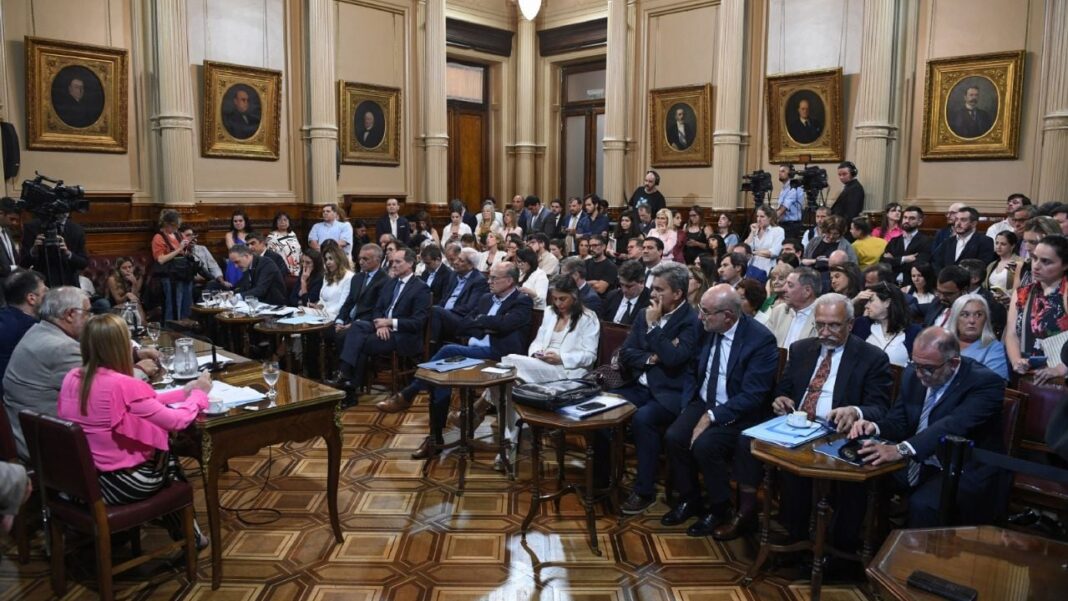 El Gobierno reunió hoy en la Casa Rosada a las autoridades de la Cámara Nacional Electoral (CNE) y a los jueces federales y secretarios electorales de 22 jurisdicciones de todo país para coordinar y ultimar los detalles de la implementación de la Boleta Única de Papel (BUP) para las elecciones legislativas del 26 de octubre.
