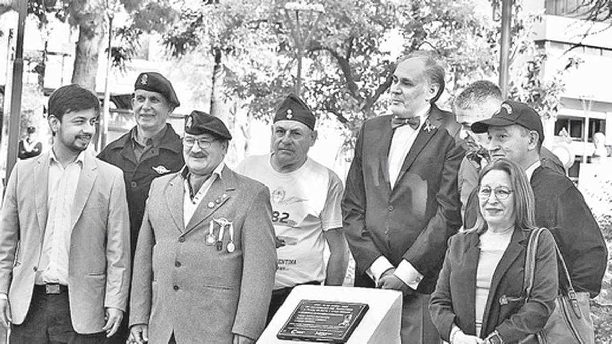 La placa conmemorativa fue descubierta en el “jardín de los gloriosos granaderos” al frente del de la estatua del General José de San Martín, en la Plaza 25 de Mayo.
