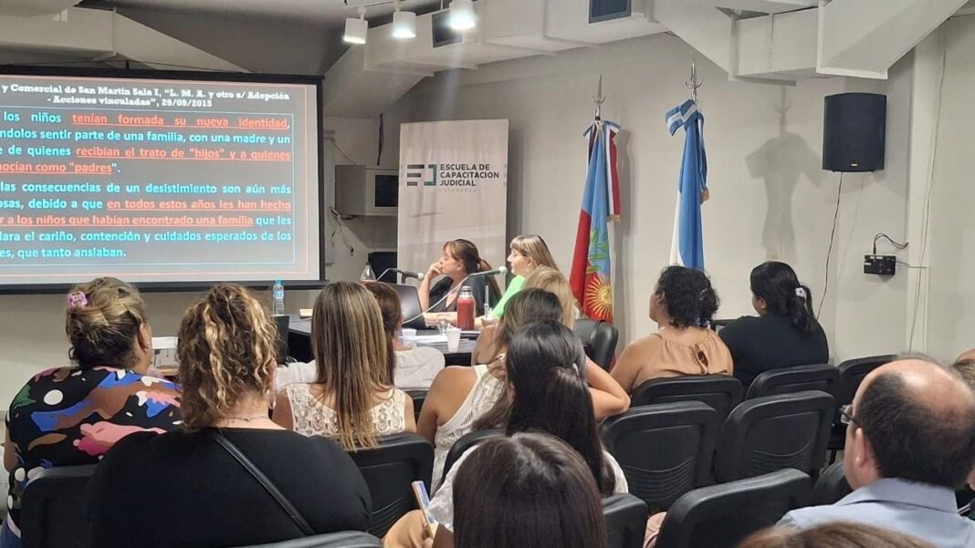 En la tarde de hoy y con una importante participación tanto presencial como virtual, continúa el curso de capacitación «Los procesos adoptivos de niñas, niños y adolescentes desde el modelo psicojurídico», una propuesta formativa destinada a profesionales vinculados al ámbito judicial, psicológico y social que intervienen en procesos de adopción.