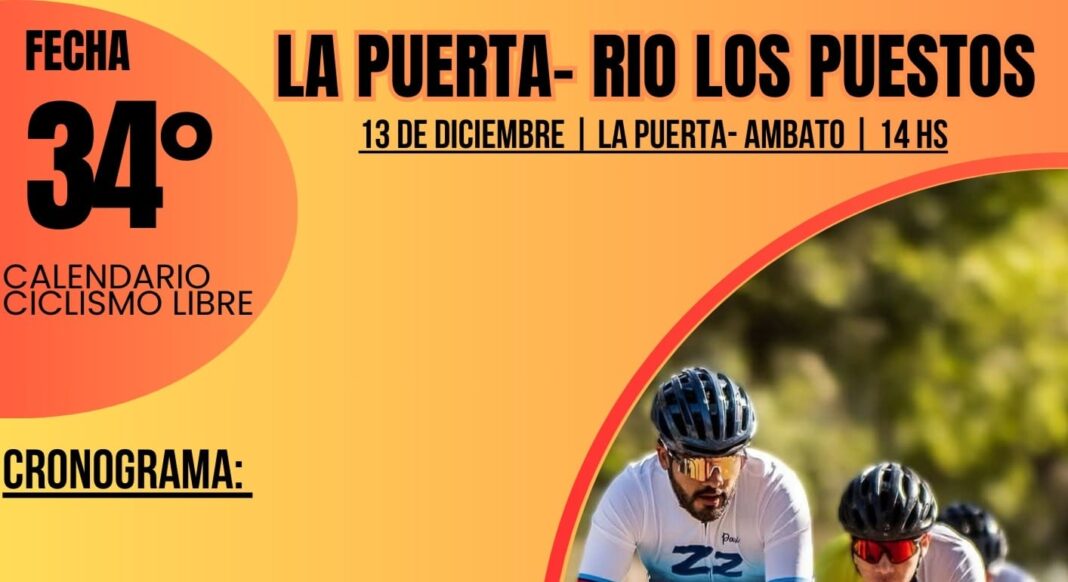 La organización del Calendario de Ciclismo Libre confirmó que todo se encuentra listo para la realización de la 34° Fecha, que tendrá lugar este viernes 13 de diciembre en el tradicional recorrido La Puerta – Río Los Puestos, en el departamento Ambato.