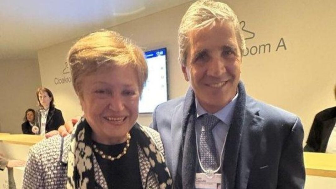 “Fue genial el breve intercambio con Luis Caputo en Davos. Aprecio la fuerte performance de la economía argentina y el progreso en la acumulación de reservas”, escribió la titular del FMI en su publicación.