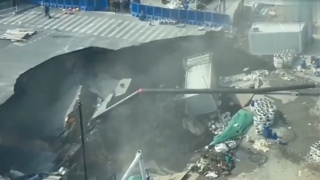 El incidente ocurrió en el cruce de Qixin Road y Li’an Road, un sector donde se realizan excavaciones subterráneas para una nueva línea de transporte. Según informaron medios locales, el colapso se produjo de manera repentina tras la aparición de grietas en el asfalto. Las imágenes muestran cómo el pavimento comienza a resquebrajarse antes de ceder por completo, mientras una nube de polvo cubre el área. Los obreros lograron escapar a tiempo.