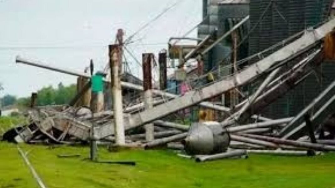 El impacto más severo se produjo en el sector agroindustrial, donde las intensas ráfagas derribaron norias utilizadas para el movimiento de cereales y generaron importantes daños en galpones y silos.